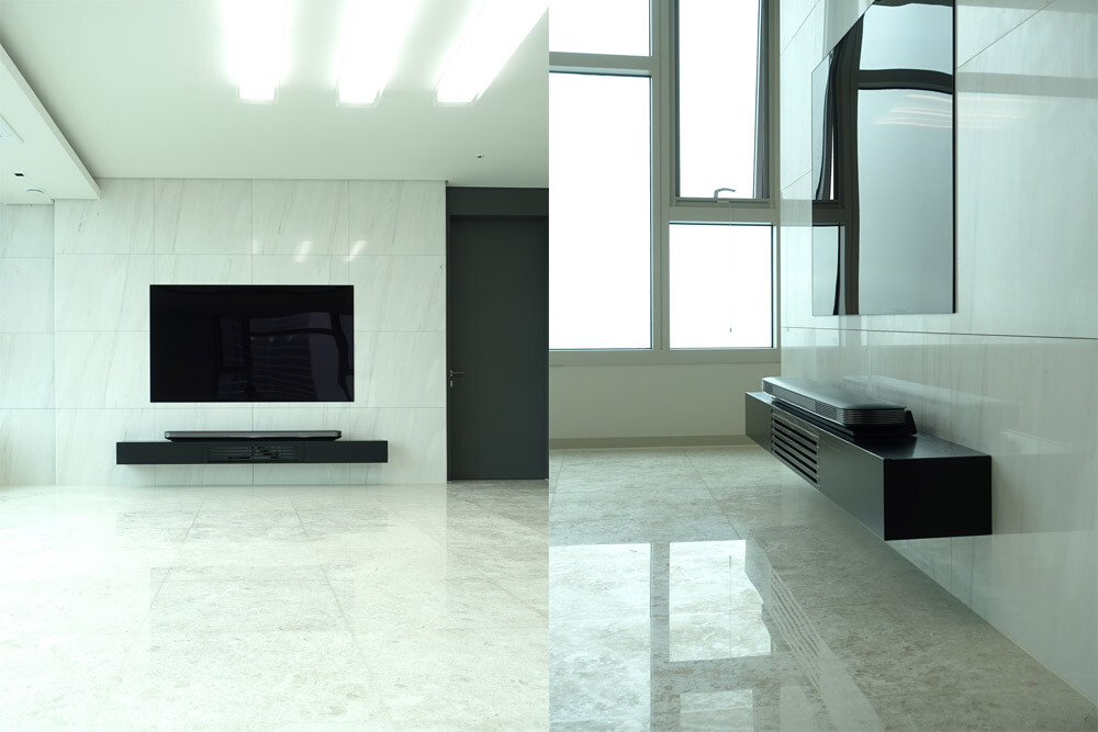 벽걸이거실장의 설치높이가 결정 됩니다.
