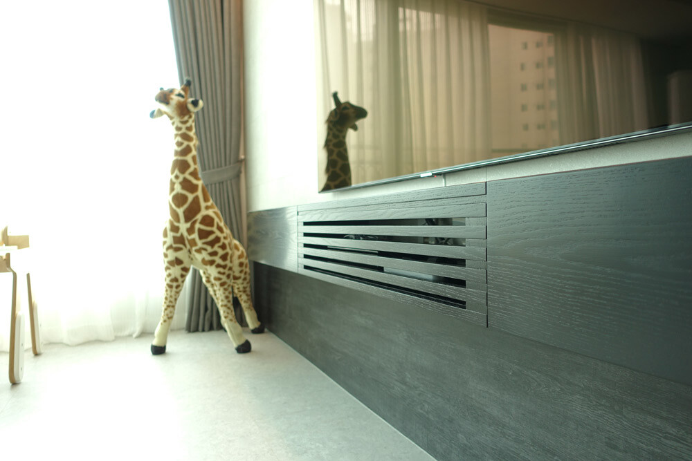 거실장 중앙 수납공간에 넣고 사용하시면 깔끔하면서 실용적입니다.
