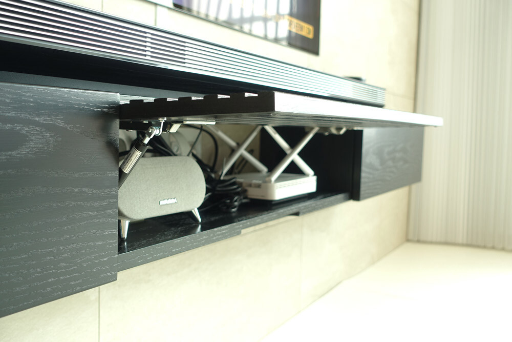 양쪽의 수납공간에는 TV와 관련 된 매뉴얼, 리모컨 등을 보관/수납하기에 용이합니다.