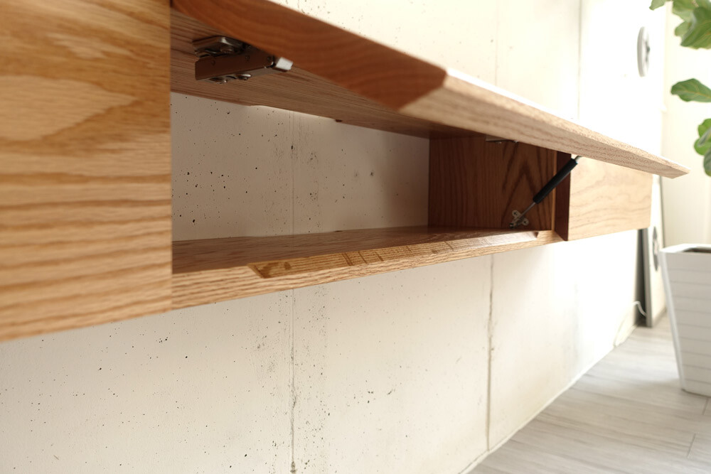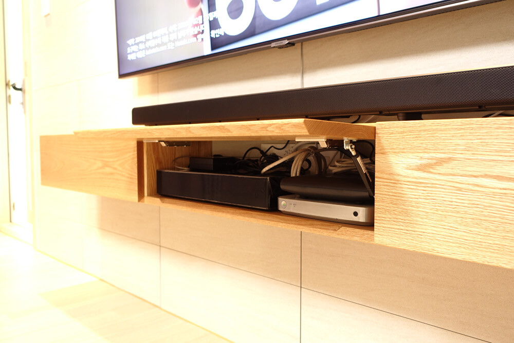 양쪽의 수납공간에는 TV와 관련 된 매뉴얼, 리모컨 등을 보관/수납하기에 용이합니다.