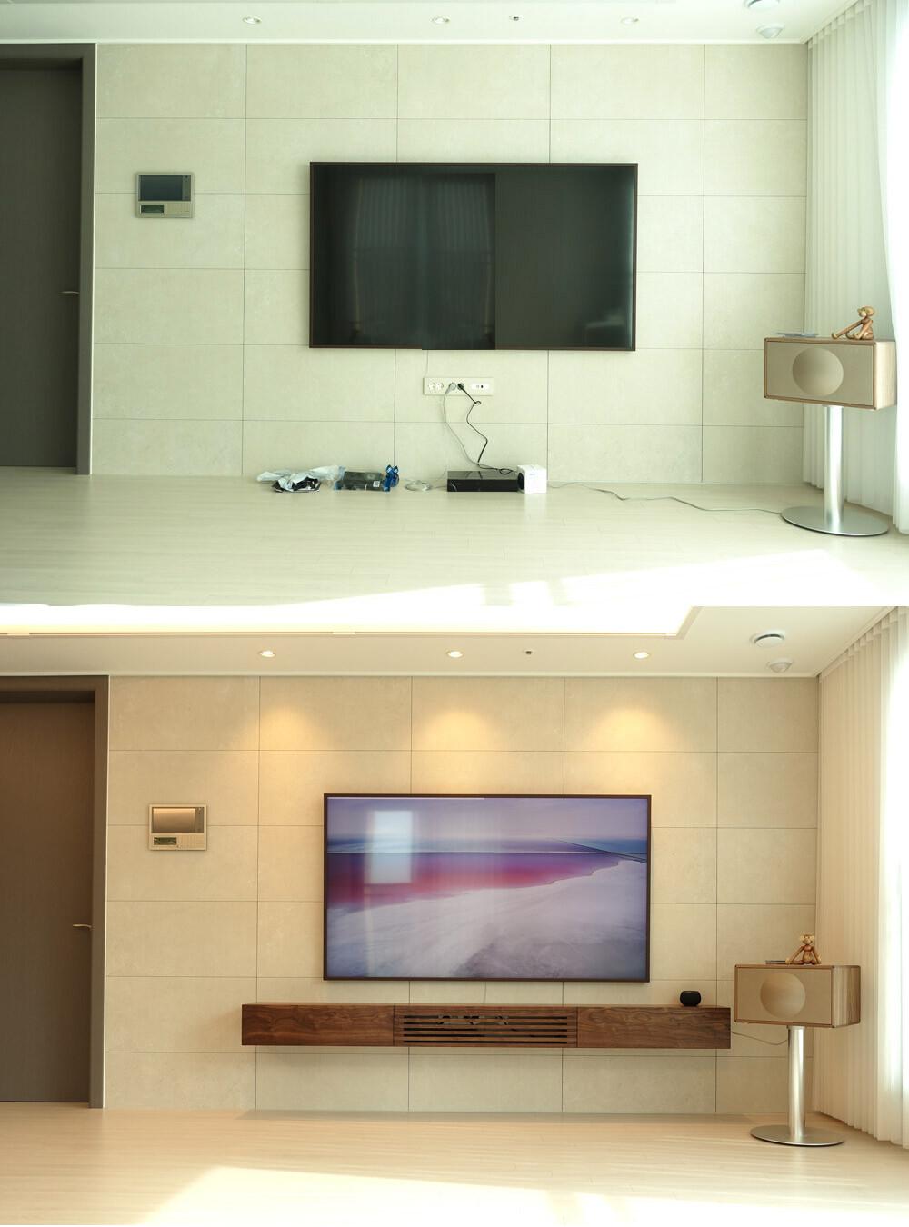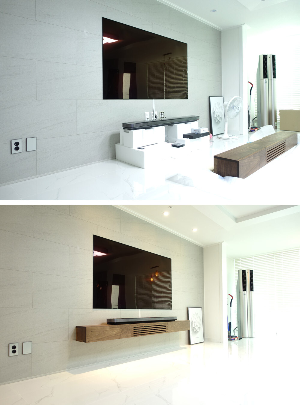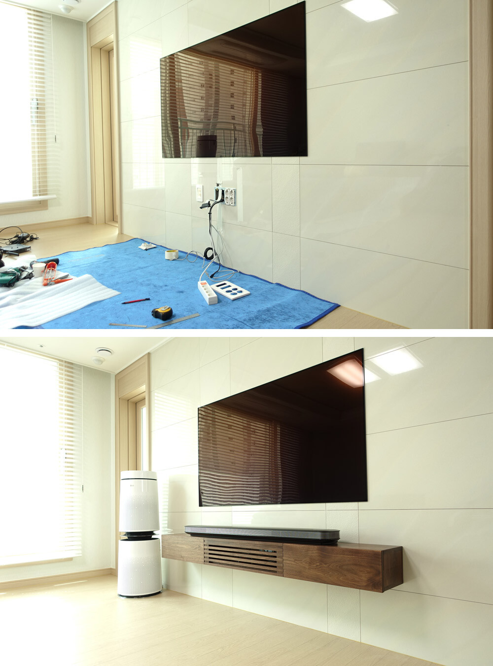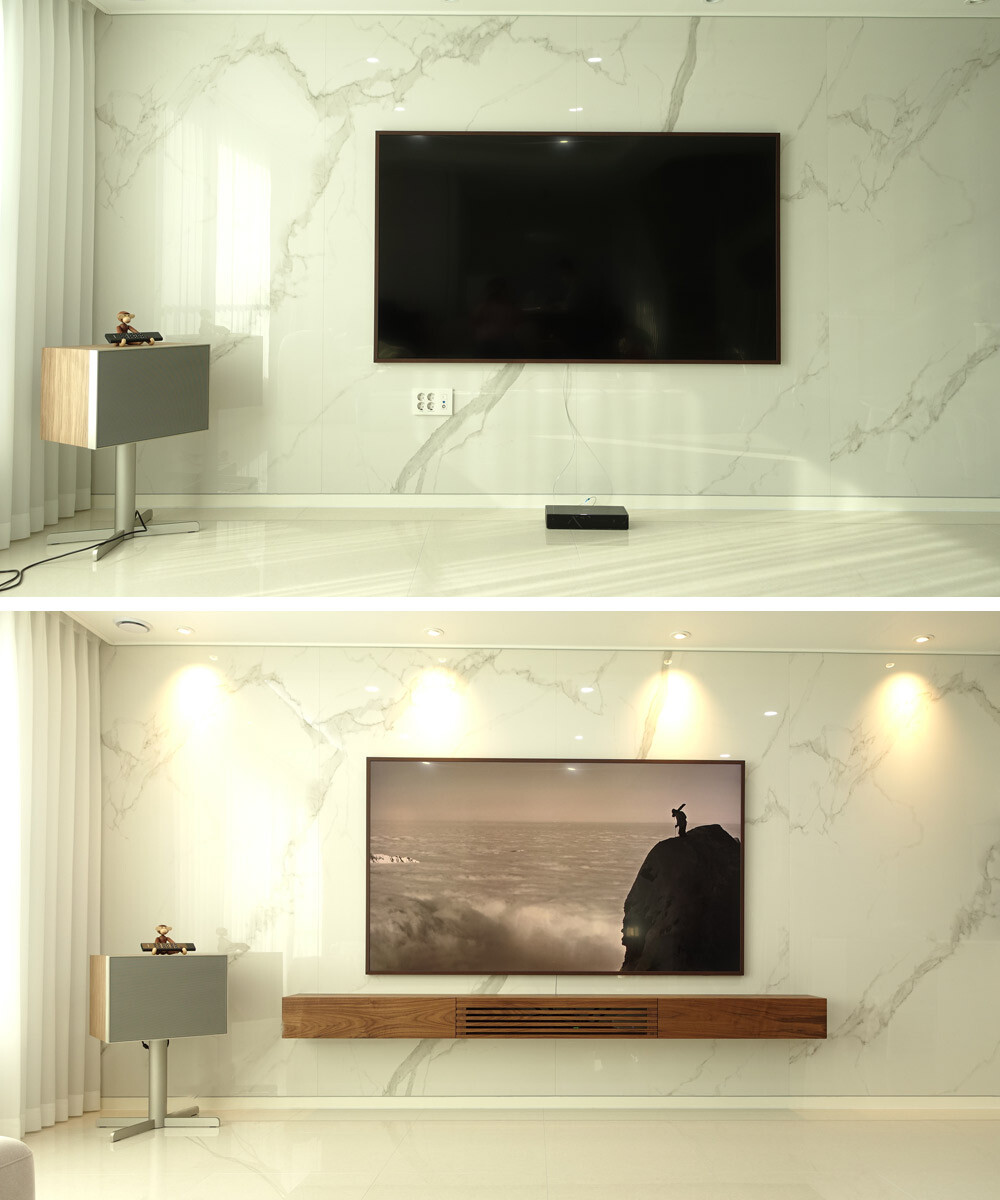 *설치된 TV의 위치(높이)와 TV아래 콘센트의 위치에 따라