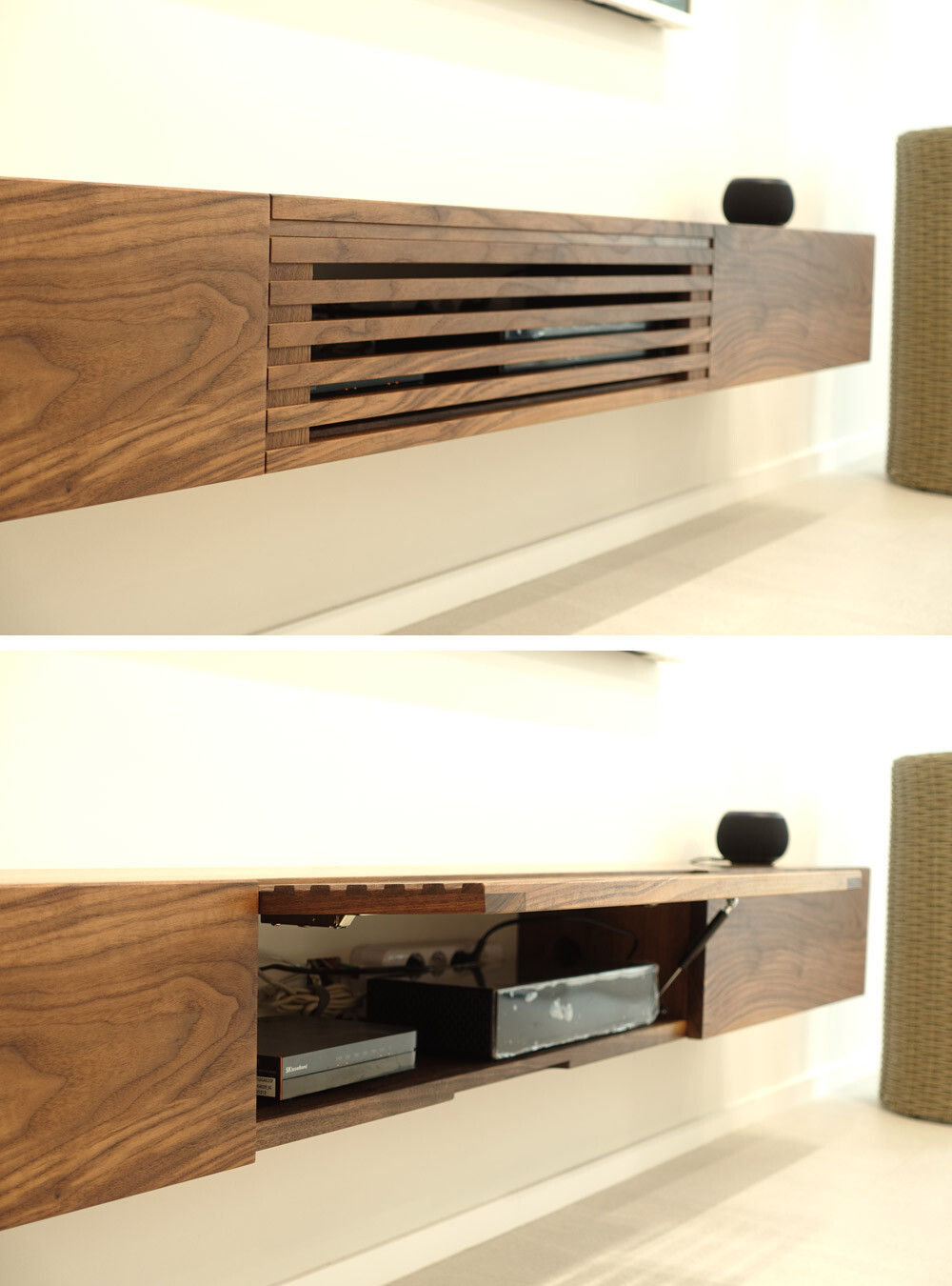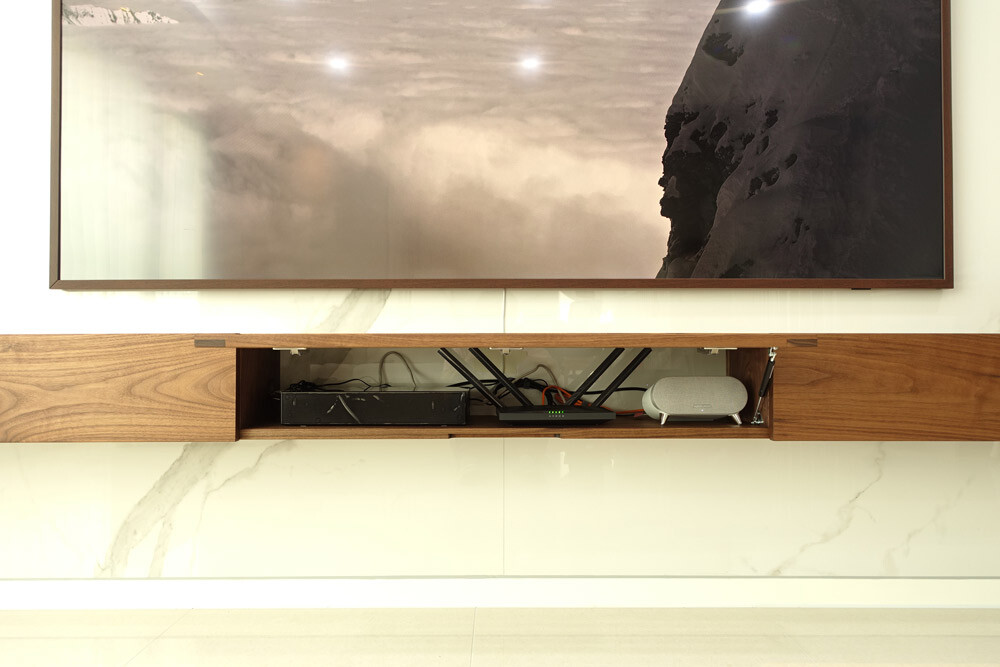 거실장 중앙 수납공간에 넣고 사용하시면 깔끔하면서 실용적입니다.