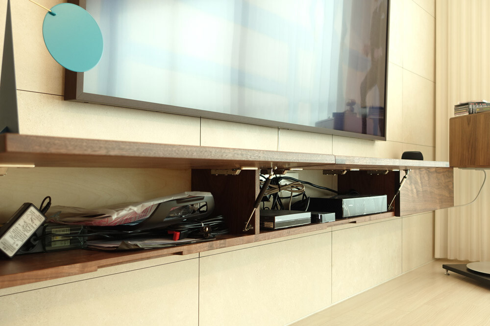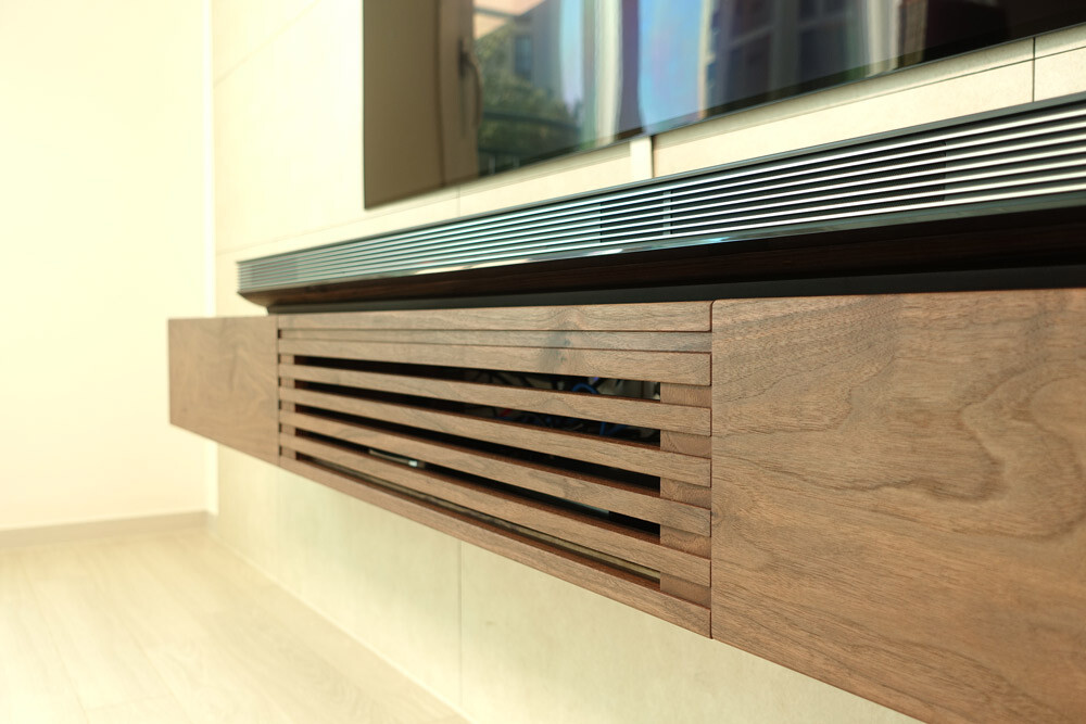 양쪽의 수납공간에는 TV와 관련 된 매뉴얼, 리모컨 등을 보관/수납하기에 용이합니다.