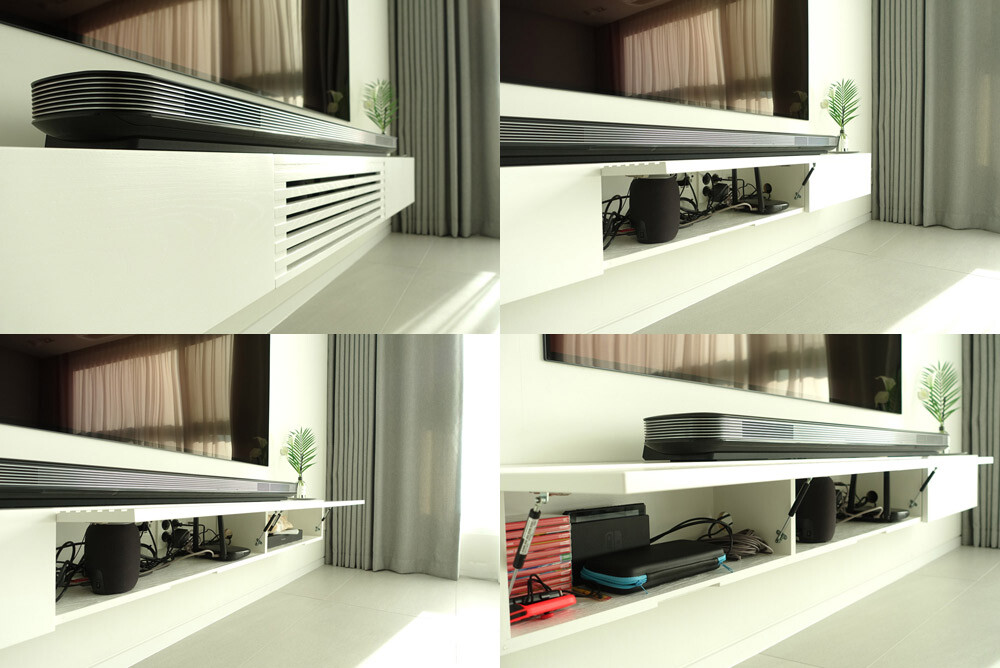 양쪽의 수납공간에는 TV와 관련 된 매뉴얼, 리모컨 등을 보관/수납하기에 용이합니다.