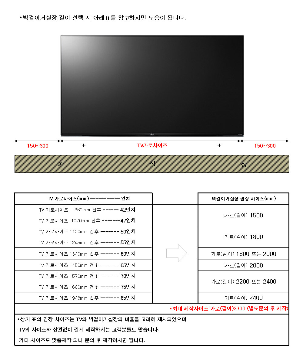 LG SIGNATURE 77인치 + 벽걸이거실장 가로(길이)2200